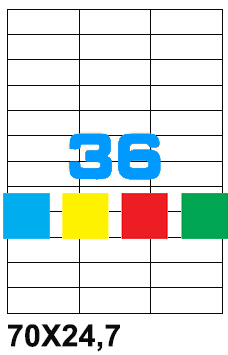 Etichette 70x24¸7 mm in Carta FLUORESCENTE Verde-Rosso-Giallo-Arancio Adesivo Permanente su Fogli A4. La scelta del colore FLUO va indicata nelle note dell`ordine.