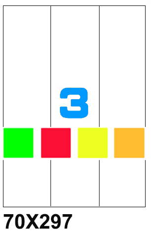 Etichette 70x297 mm in Carta FLUORESCENTE Verde-Rosso-Giallo-Arancio Adesivo Permanente su Fogli A4. La scelta del colore FLUO va indicata nelle note dell`ordine.